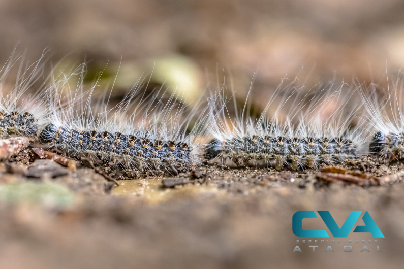 La procesionaria es la fase larvaria de una polilla que deposita sus huevos en los pinos. Durante el invierno permanecen en nidos visibles en las copas de los árboles (esas bolsas blancas algodonosas que seguramente has visto). Con la subida de temperaturas, normalmente entre finales de invierno y primavera, las orugas descienden al suelo en fila, formando la característica “procesión”.